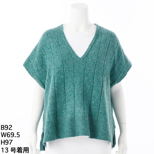 商品名:針抜き柄ベスト〈7G〉【グリーンノート】【大きいサイズ】【13号・15号・19号】