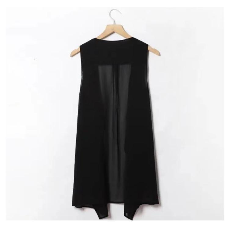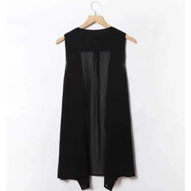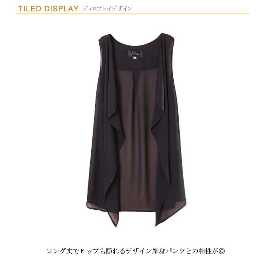 シフォンベスト ジレ 無地 夏 春 ロングベスト 前開き ロング丈 薄手 ノースリーブ ロングジレ カーディガン ガウン 羽織り