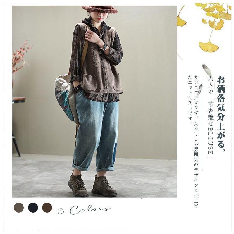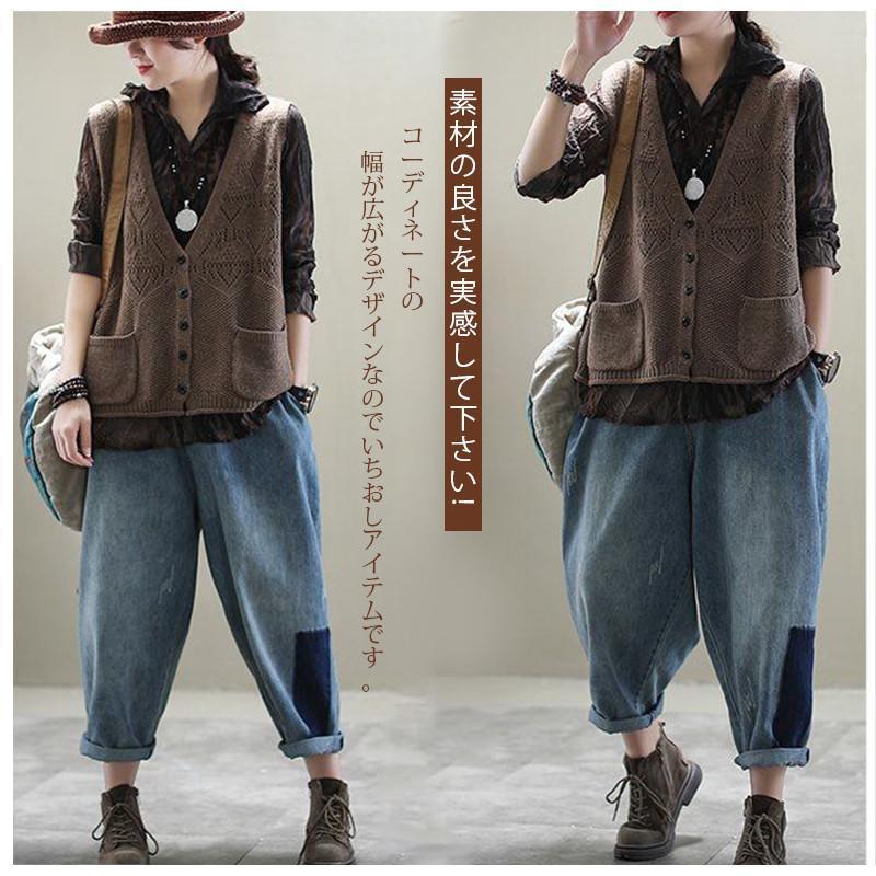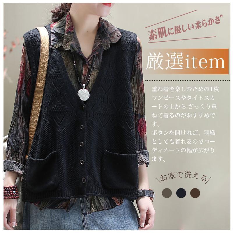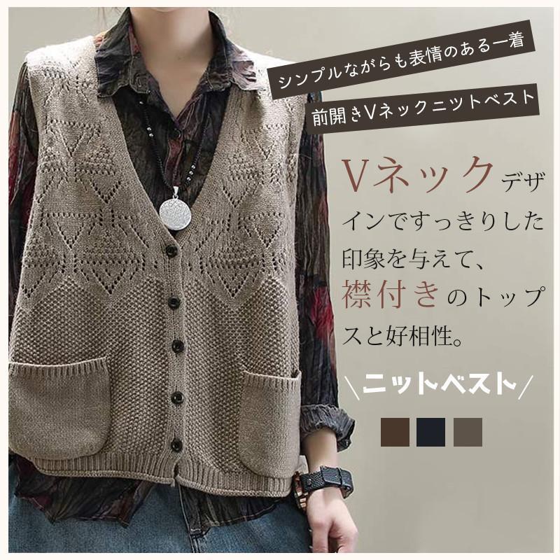 ジレ ニット セーター レディース 春 秋コーデ ポケット付き ニットソー vネック ス ゆったり 前開き ノースリーブ