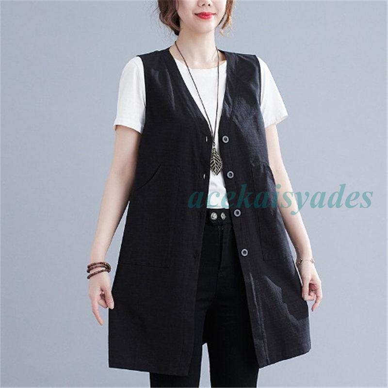 ジレ レディース トップス ロングジレ ベスト ポケット付き ノースリーブ オフィス おしゃれ 着回し ロングジレ着まわせる万能なトップスベスト レディース ノースリーブ ロングジレ リネン 綿麻風 トレンチベスト 無地 ジレンチ トップス ロングベスト ロングコート レディース ジレ 春 秋 大きいサイズ ゆったり 大人 OL 通勤