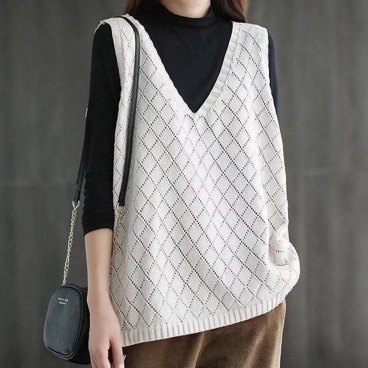 ニット レディース チョッキ ス Vネック 薄手 ゆったり プルオーバー ジレー セーター 無地 重ね着