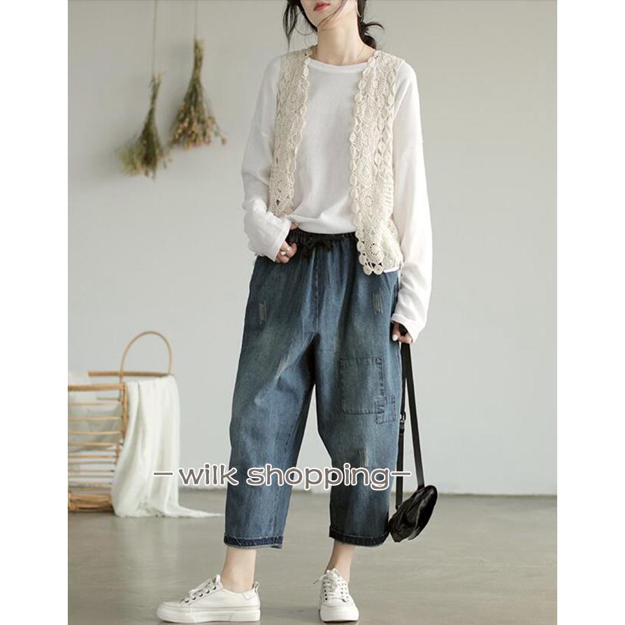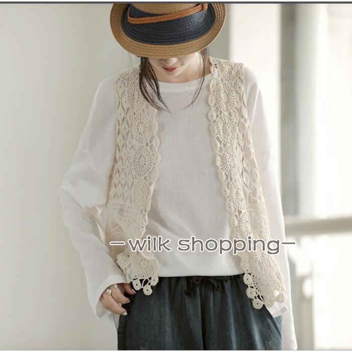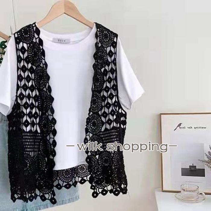 ベスト レディース おしゃれ サマーベスト ジレ 前開き トップス 夏 ショート丈 花柄 春ベスト 透かし編み 重ね着 カジュアル