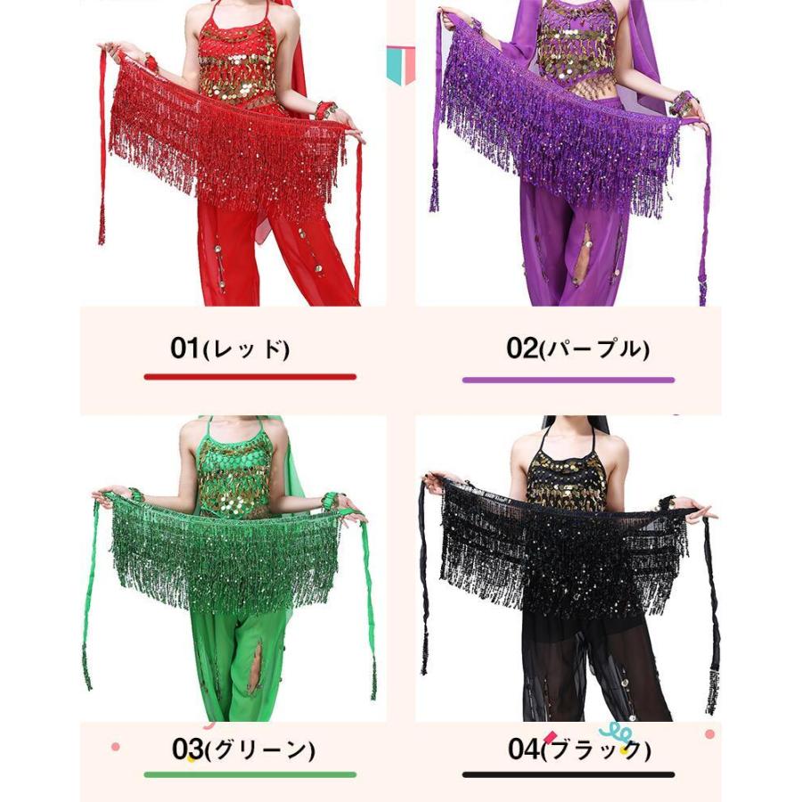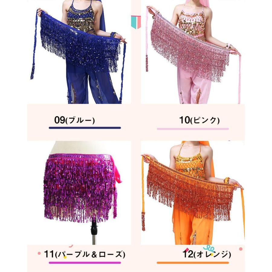 メール便送料無料 ヒップスカーフ スパンコール ベリーダンス フリンジ ダンススカーフ ブラック レッド ピンク シルバー ウェストチェーンDANCE/練習着 ダンス