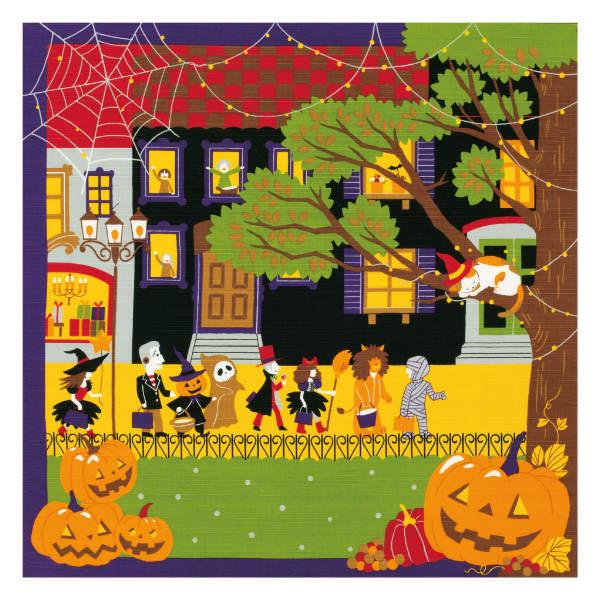 ●三毛猫のみけと過ごす日本の四季を描いた風呂敷シリーズの「みけのハロウィン」です。