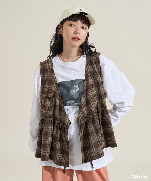 キーワード:ベスト ジレ レディース チェック ノースリーブ リボン 洗える 無地 ピクニック レジャー ベーシック 公園 秋 大人カジュアル 冬 旅行