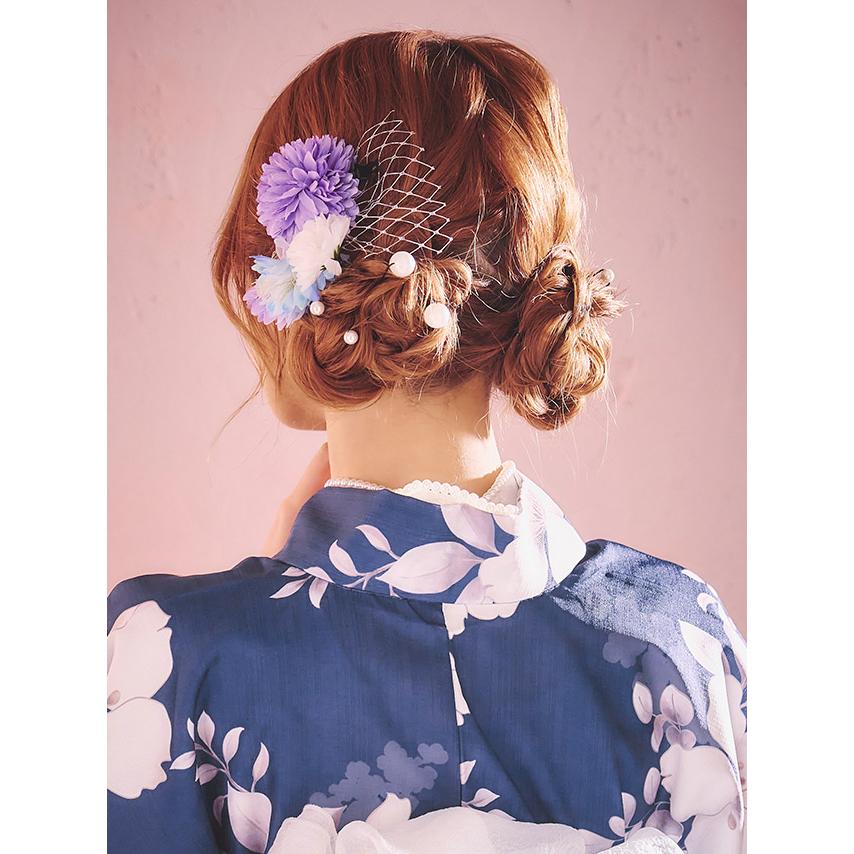 同系色のお花を組み合わせた豪華な髪飾りセット