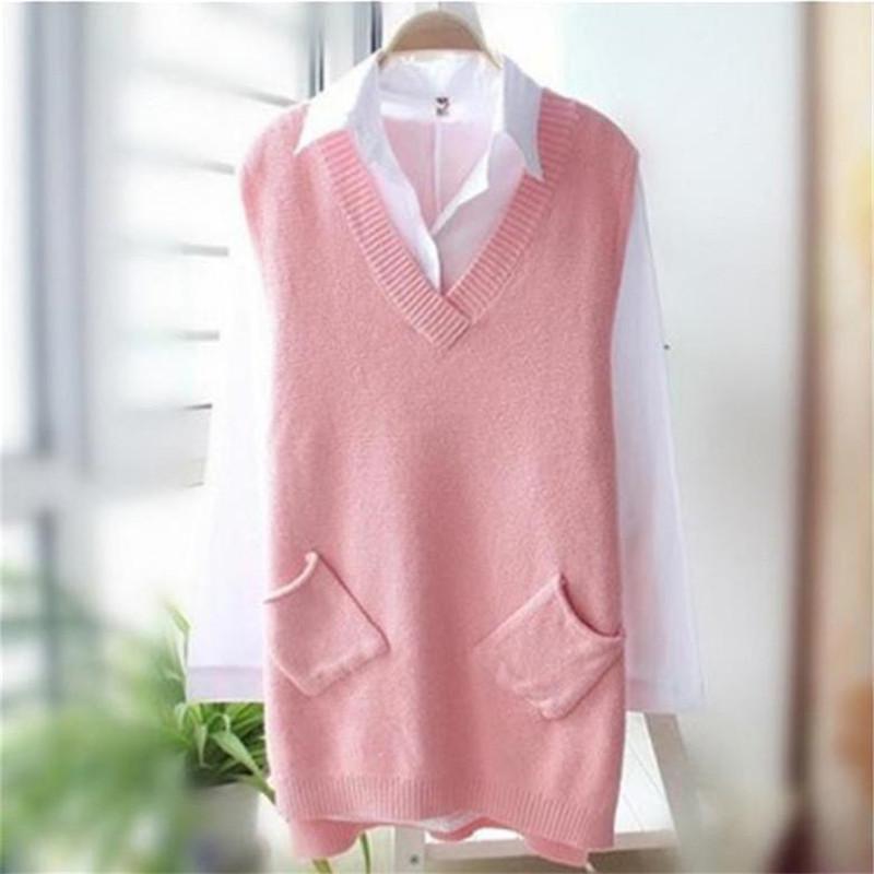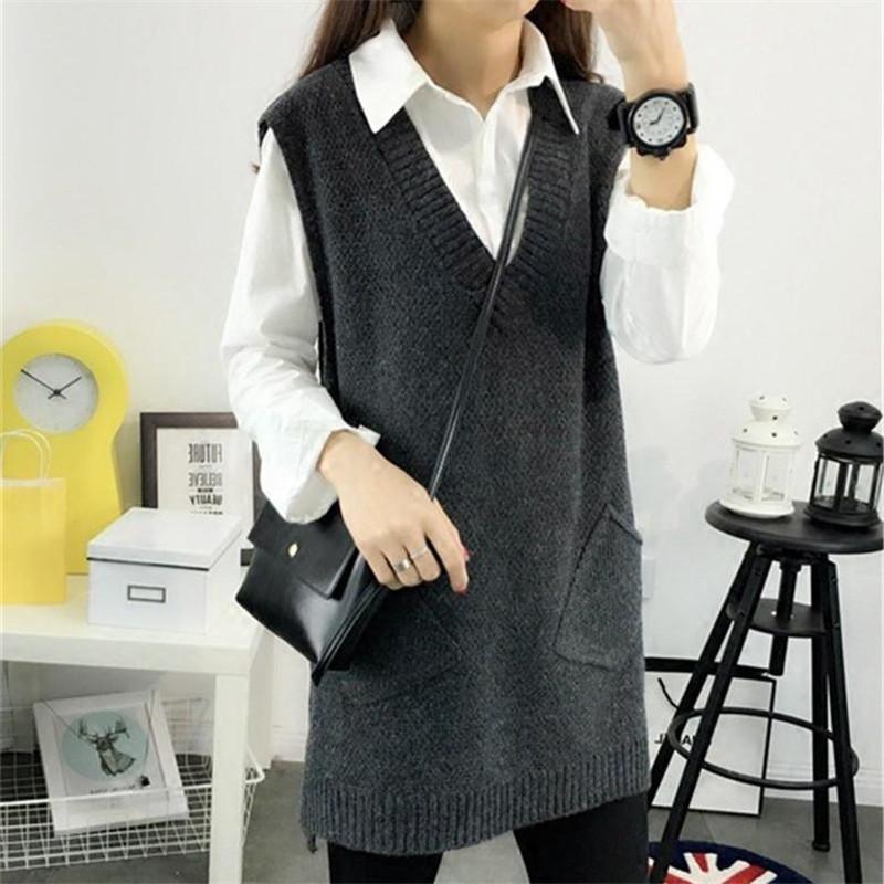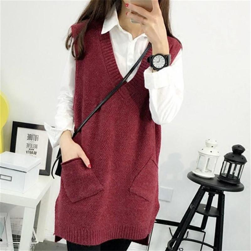 【大特価】ニット レディース ロング ス チョッキ Vネック ゆったり プルオーバー ジレー セーター 無地 秋コーデ カジュアル 重ね着