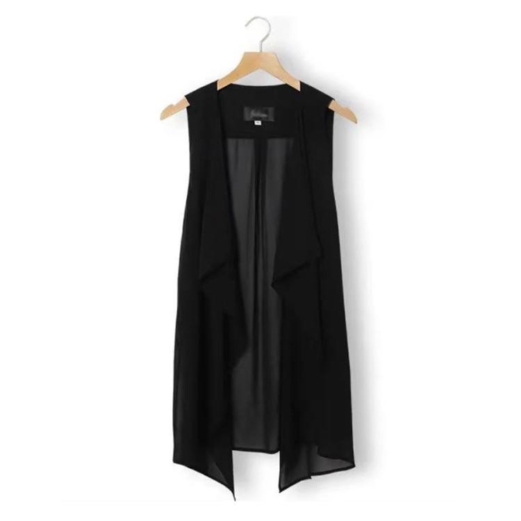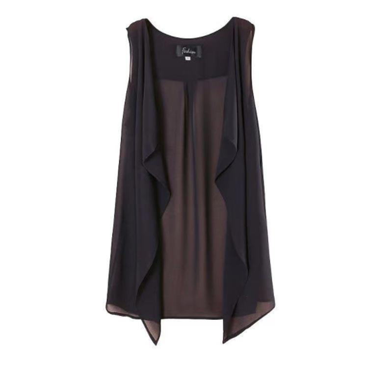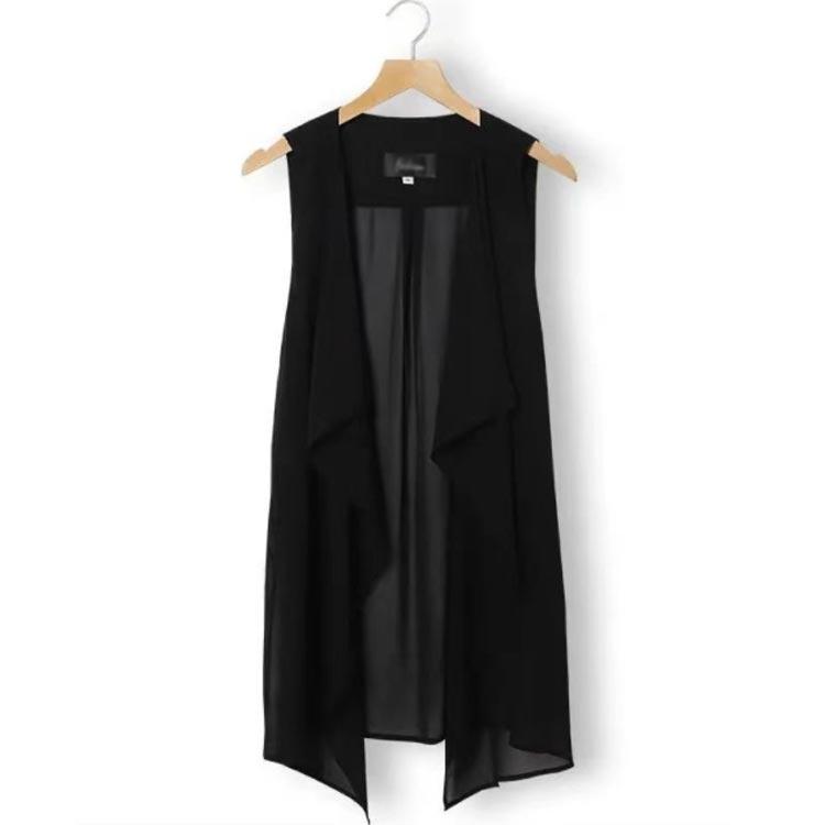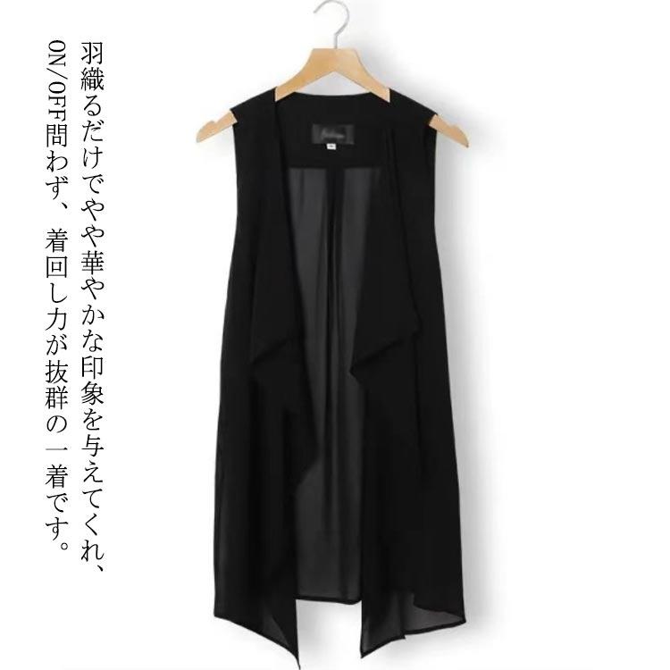 シフォンベスト ジレ 無地 夏 春 ロングベスト 前開き ロング丈 薄手 ノースリーブ ロングジレ カーディガン ガウン 羽織り