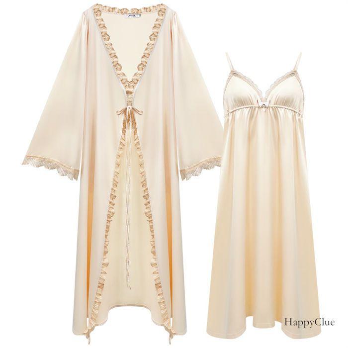 ナイトウエア ロング丈 スリップ ランジェリー フリル ガウン キャミワンピース 2点セット ネグリジェ 姫系 ルームウェア 春夏 レディース 寝巻き 部