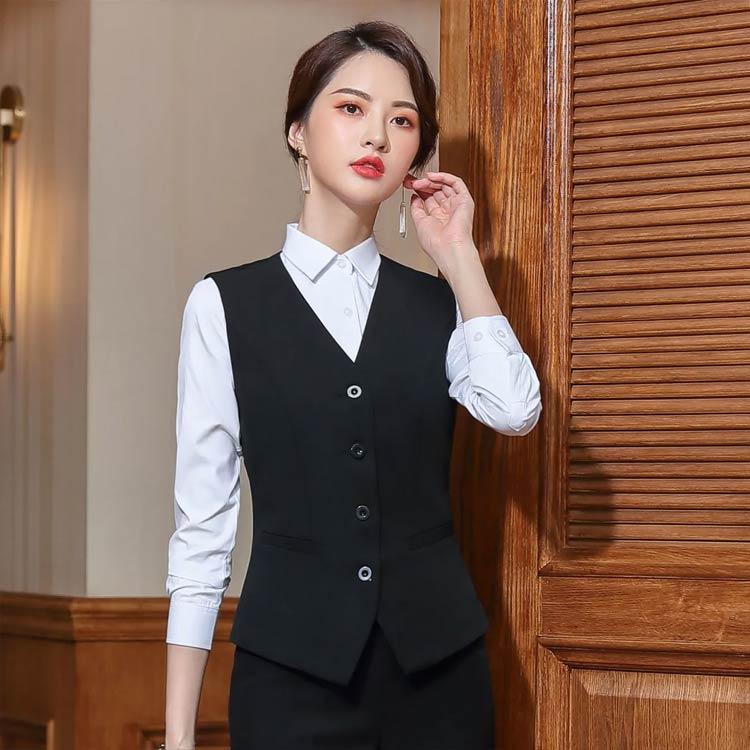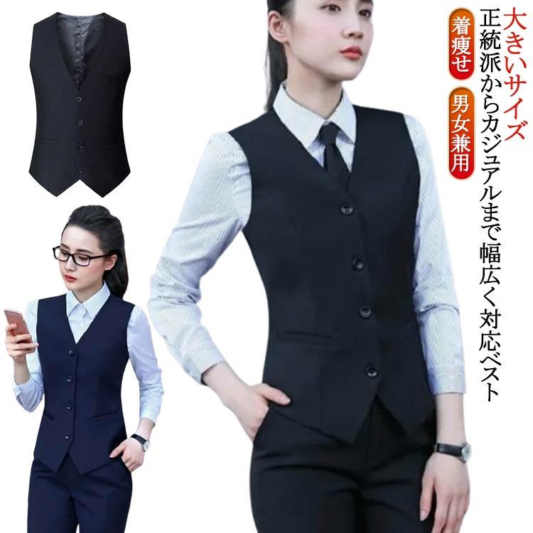 ベスト オフィス 単品 黒 事務服 大きいサイズ ブラック 通勤 男女兼用 仕事着 企業 ユニフォーム 前開き 制服 カフェ 着痩せ 洗える ネイビー