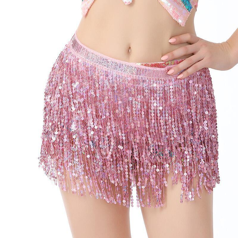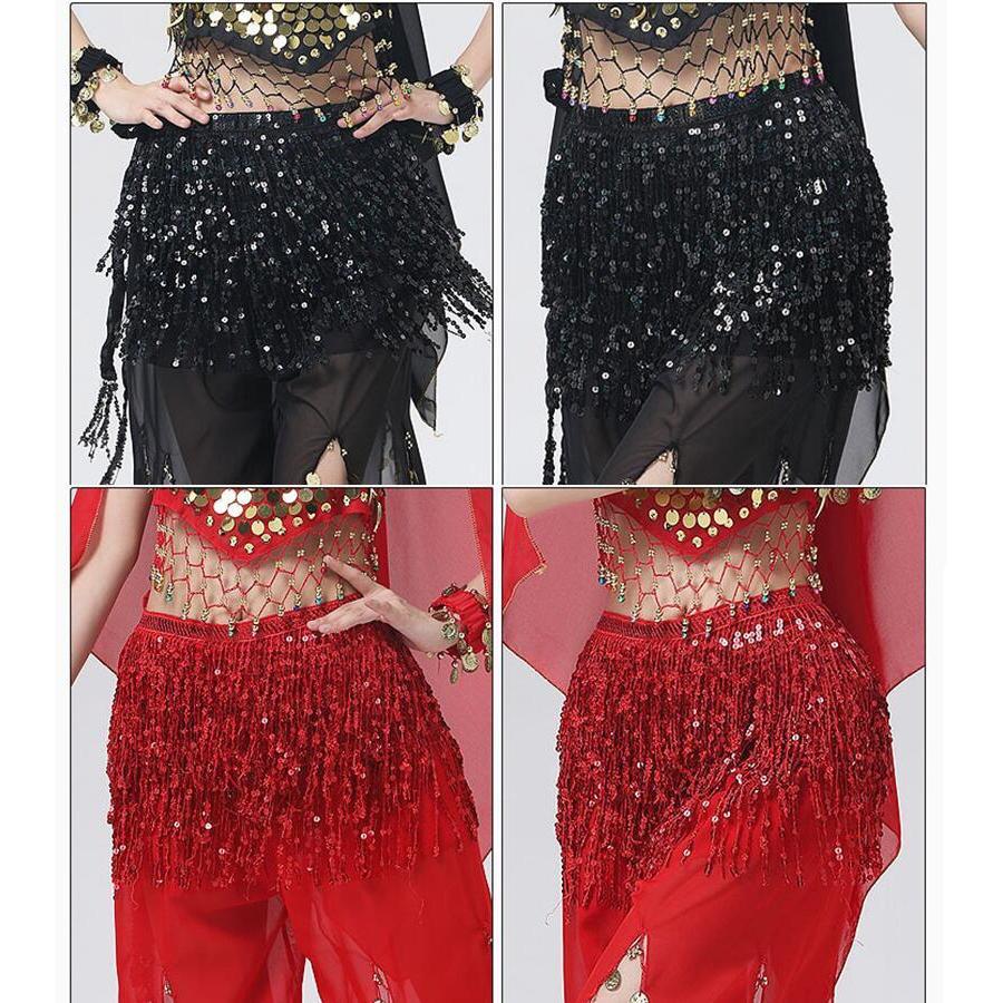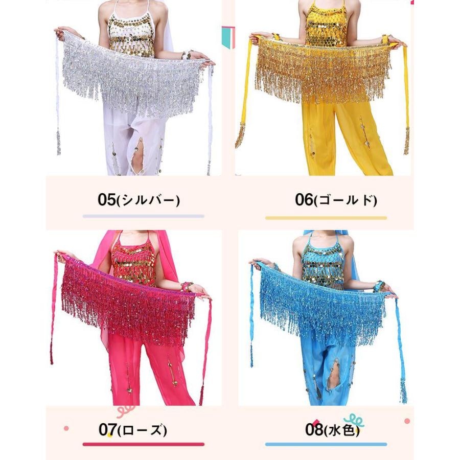メール便送料無料 ヒップスカーフ スパンコール ベリーダンス フリンジ ダンススカーフ ブラック レッド ピンク シルバー ウェストチェーンDANCE/練習着 ダンス