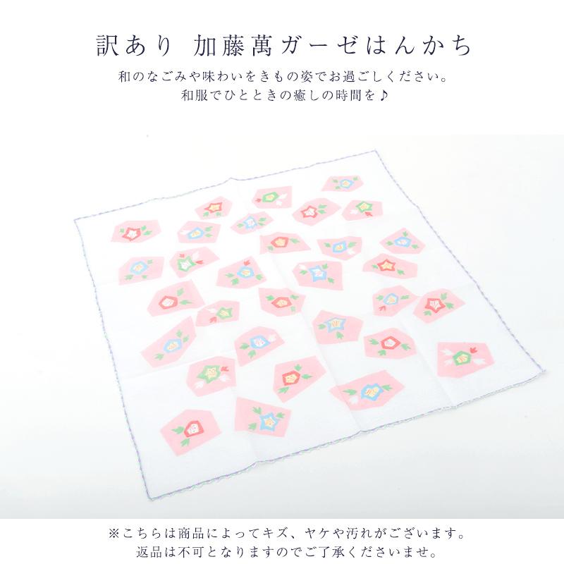 メール便 送料無料 訳あり 廃棄品 加藤萬謹製 ガーゼ ハンカチ 日本製 和装小物 送料調整 ポイント消化