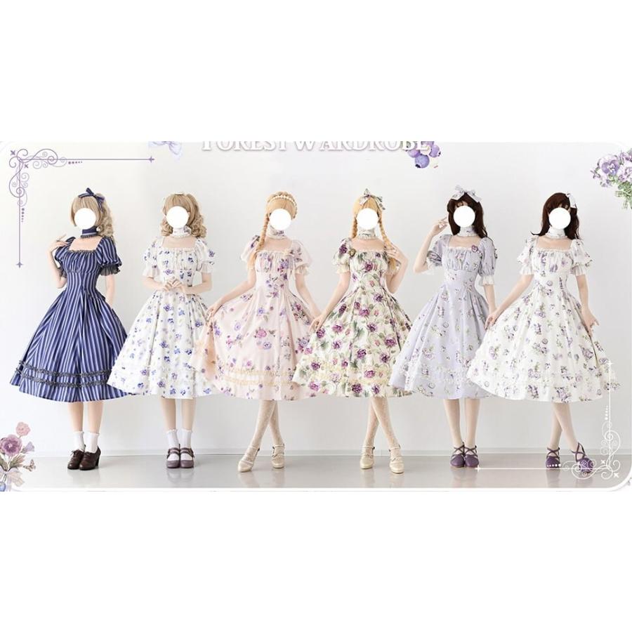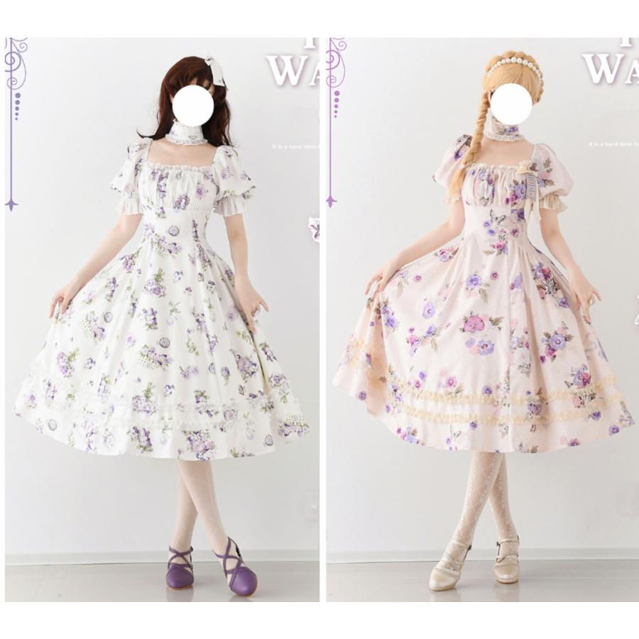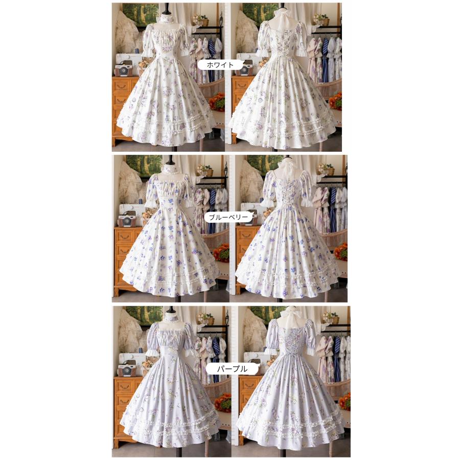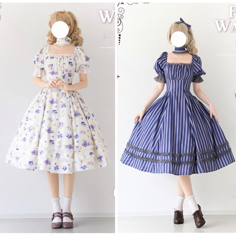 ロリータ 総柄 半袖ワンピース 付け襟 2way 6color