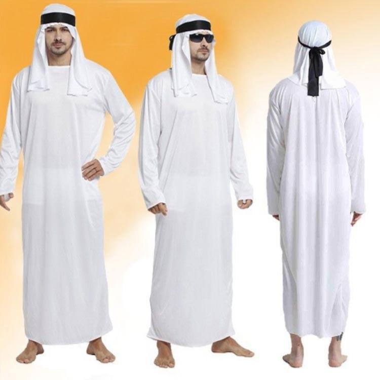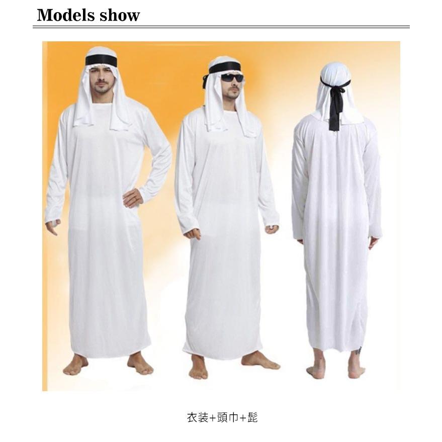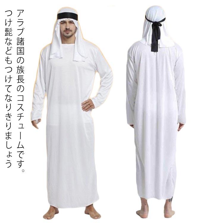 商人 ハロウィン コスプレ ドバイ アラブ アラビア 衣装 頭巾 髭 3点セット 首長 アラブの王子 仮装 アラブ服 中東 石油王 男性用 メ
