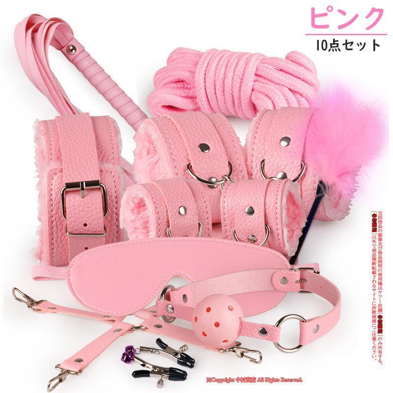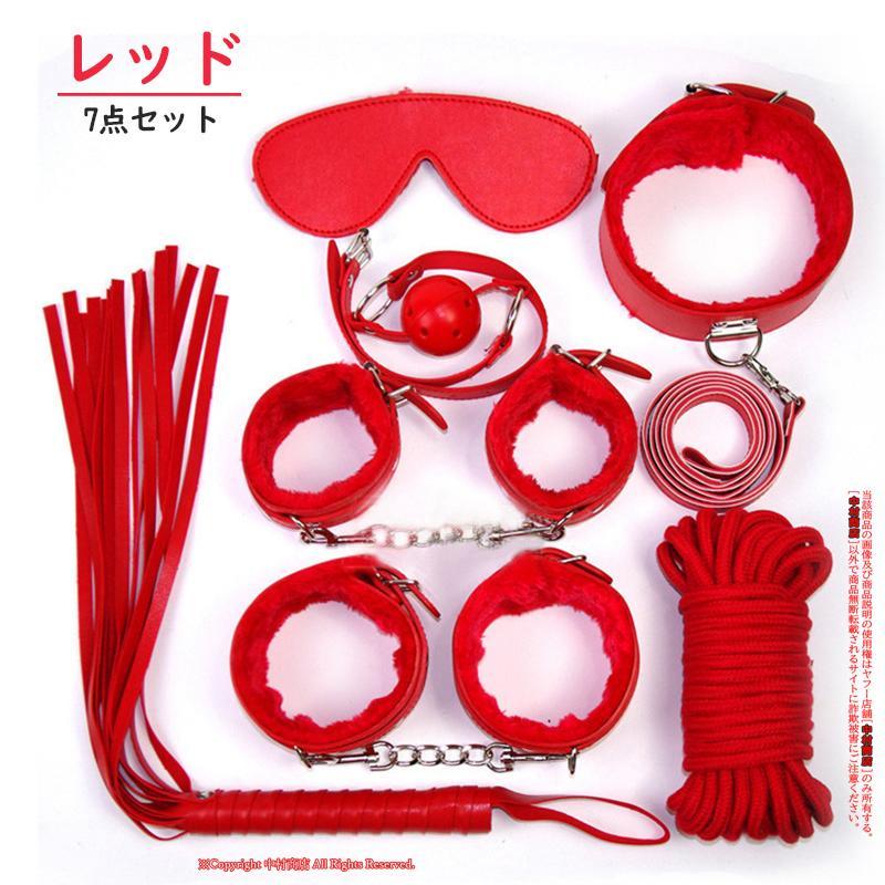 手錠 腕輪 手枷 足枷 7点セット SM かわいい ふわふわ おもちゃ 10点セット ファー 縄 鞭 ネックレス ピンク 紫 赤 黒 ハロウィン コスプレ セクシー halloween
