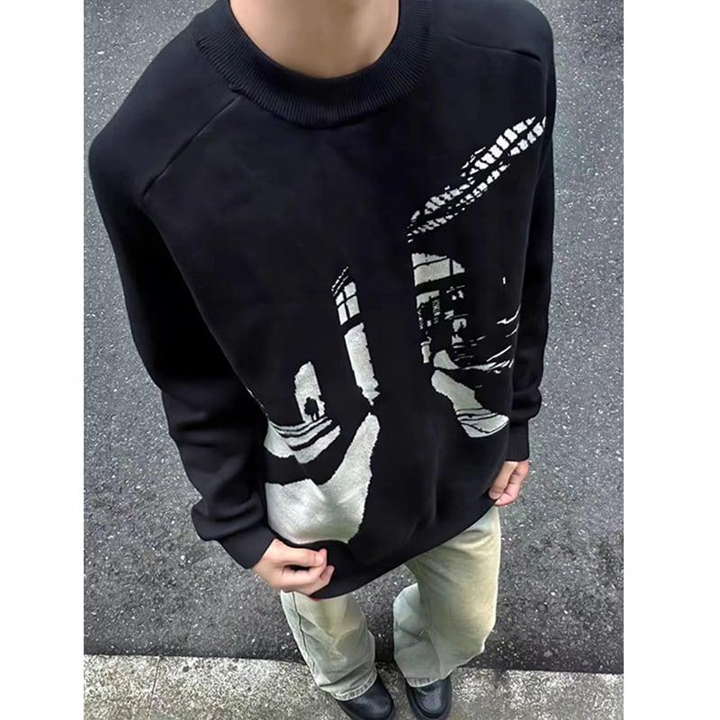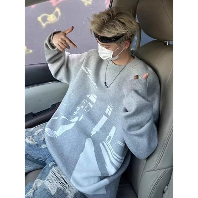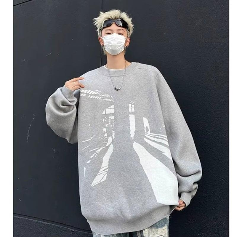 2color ニットトップス 男女兼用 メンズ ブラック グレー おしゃれ
