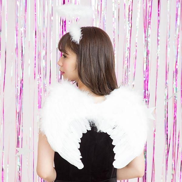 【コスプレ フリーサイズ 天使の羽】天使カチューシャと天使の羽のセット。本物の羽で出来ているのでとっても本格的!ハロウィン以外にも色々使えます!