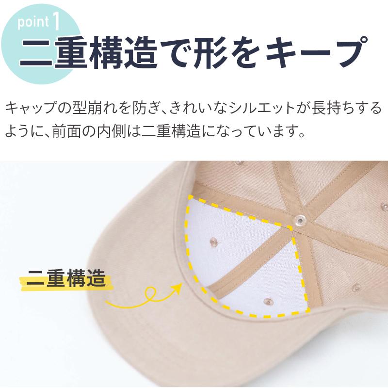 【Point.04】二重構造で形をキープ。キャップの型崩れを防ぎ、きれいなシルエットが 長持ちするように、前面の内側は二重構造になっています。