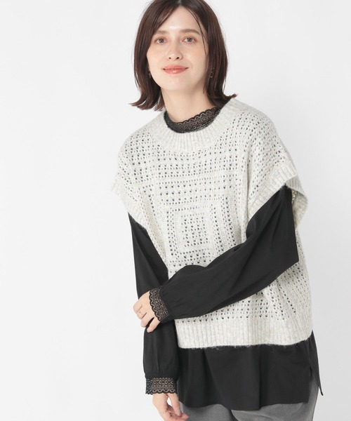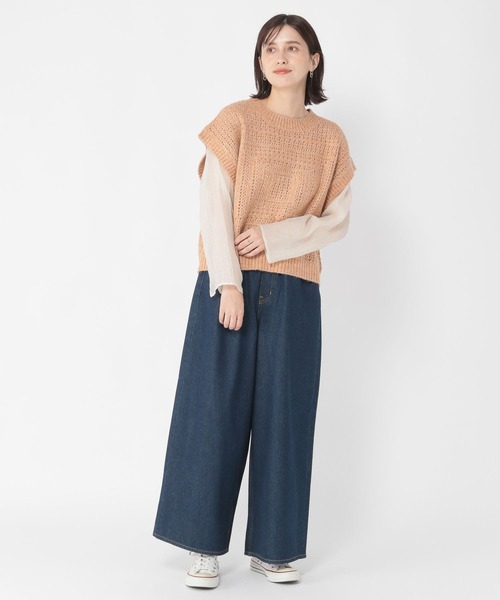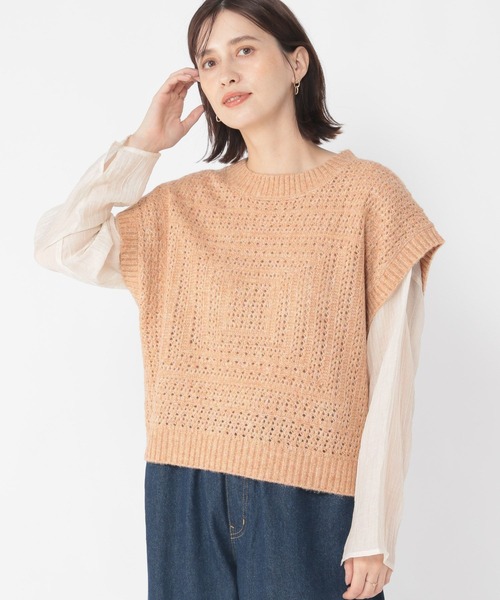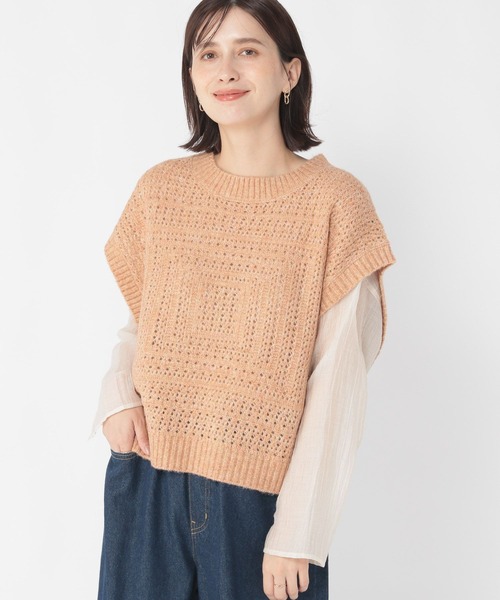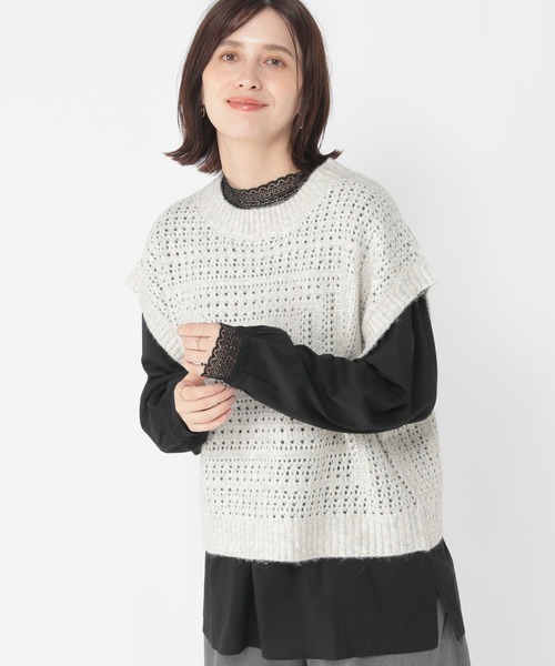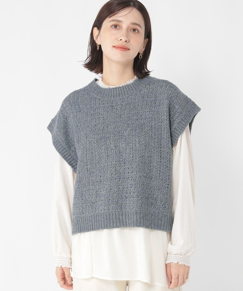 studio CLIP ベスト ジレ 5ゲージスクエアメランジベスト レディース