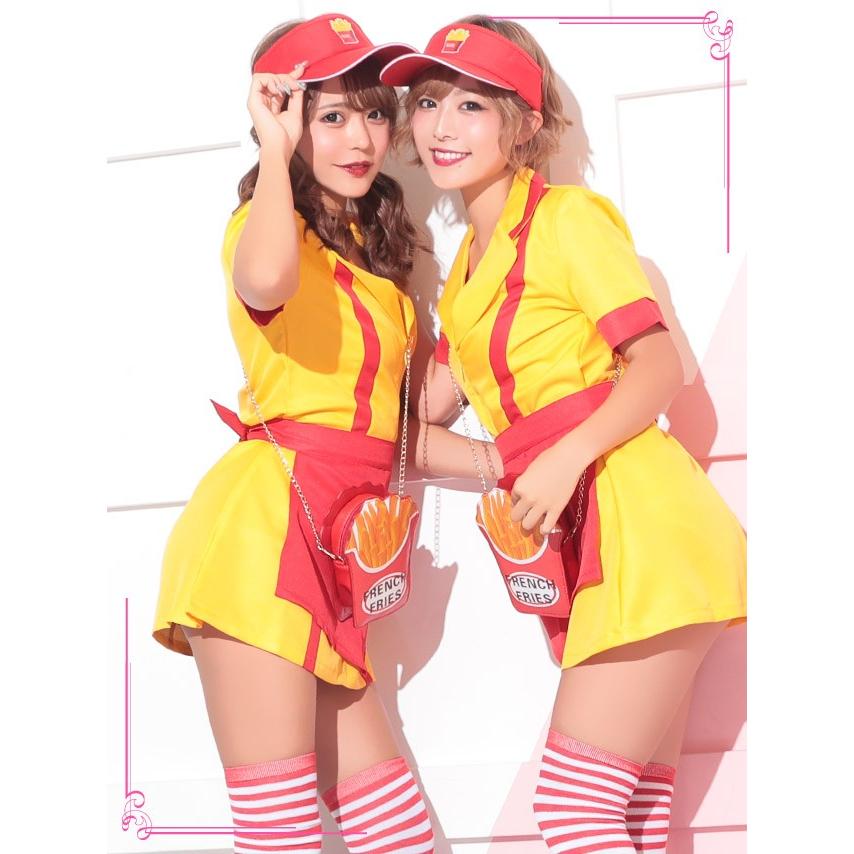 Tika コスプレ ハロウィン 衣装 5点set ハンバーガーショップ ガール コスチュームセット