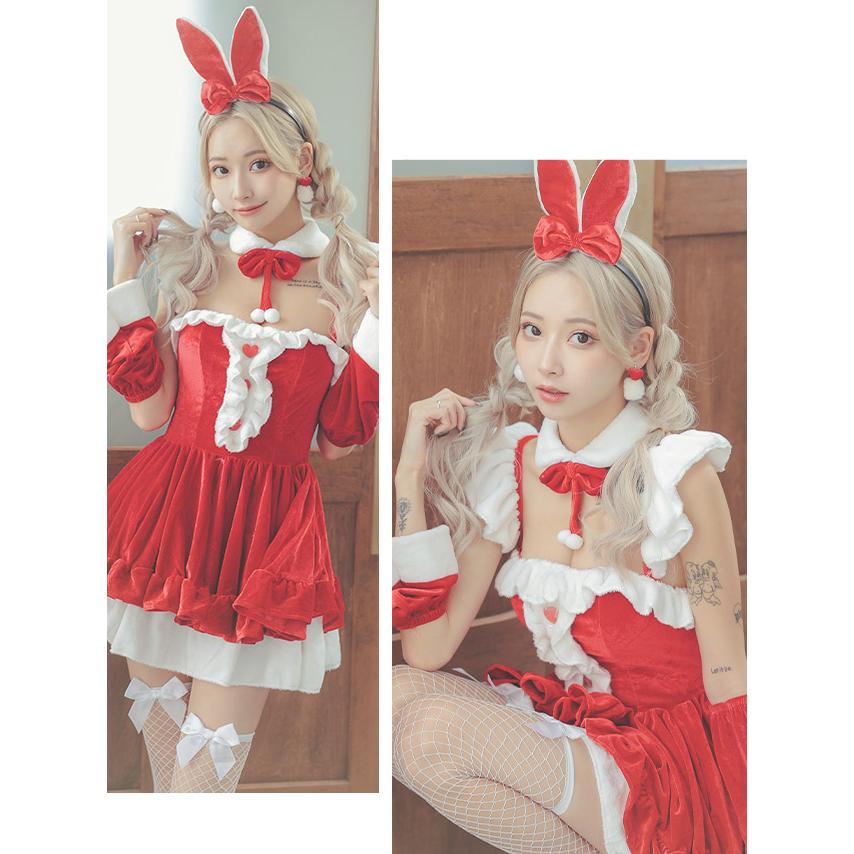 Tika サンタ コスプレ バニーガール バニー 衣装 ベロア うさぎ ミニ クリスマス 赤 サンタコス セクシー エロ 人気